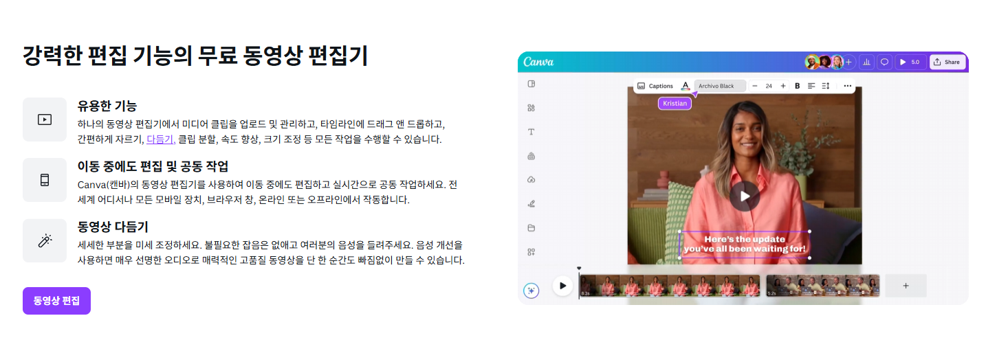 Canva Video는 웹 기반 디자인 도구인 Canva에서 제공하는 강력한 영상 편집 기능입니다.